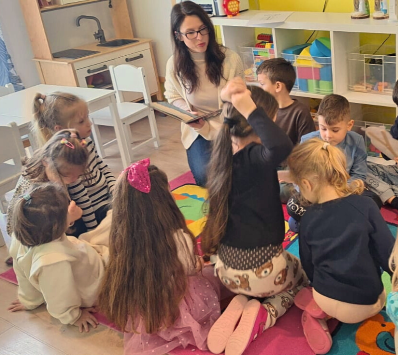 Osim kreativnog izleta organizirali smo čitanje za najmlađe na kojem su sudjelovale dvije obitelji s dječicom. Kroz slikovnice smo upoznavali razne životinje i susreli jednu plavu lopticu koja je tražila „svoje mjesto u svijetu“. Zajedno smo izradili igračku za pripovijedanje te rekvizite za predstavu uz pomoć kojih su djeca glumila dok su odrasli čitali.