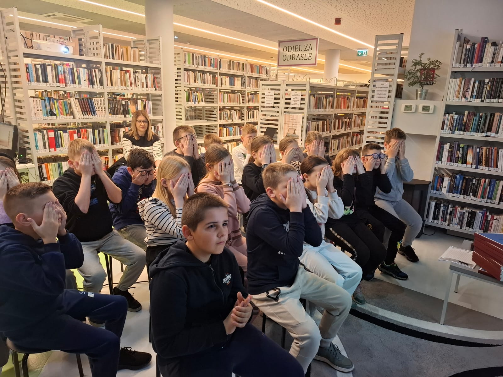 Učenici 4. a s učiteljicom Vanjom Peraić Mikas sudjelovali su na radionici "Kako bit prijatelj?" pod vodstvom Jasmine Kos, predsjednice udruge "Kreativni oslonac" i autorice projekta "Kako biti prijatelj - brajica u 50 knjižnica".