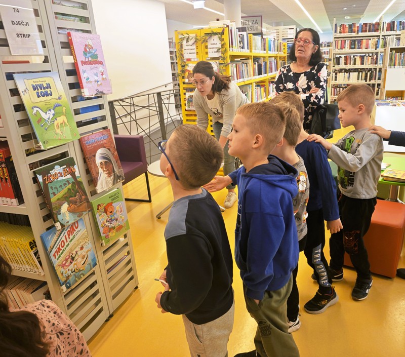Prošetali smo knjižnicom, naučili kako se knjige posuđuju te su dječica zajedno sa svojim tetama odabrali slikovnice koje su ponijeli u vrtić.