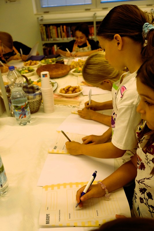 U praktičnom dijelu radionice djevojčice su imale priliku, uz našu biograjsko - kunsku pjesnikinju Radicu Vrančić, iskušati tradicionalne slastice naših baka te zabilježiti recepte u kuharice koje smo pripremili za naše polaznice. Zaključili smo koliko bogatstvo su ruke koje s ljubavlju pripravljaju jelo i stol gdje se zajedno blaguje te je mjesto susreta, pozornosti, uspomena i ljubavi.