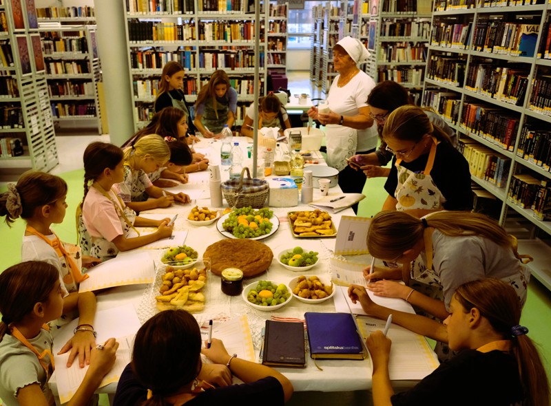 Povodom „Mjeseca ženskog zdravlja“ održali smo zabavnu i poučnu kulinarsku radionicu za djevojčice pod nazivom „Recepti moje bake“. Na samom početku radionice otkrili smo da police knjižnice skrivaju bogatu ostavštinu Dike Marjanović Radica, koja je godinama kao gastronomska stručnjakinja i učiteljica podučavala mlade djevojke tajnama dalmatinskih jela na tečajevima kuhanja, a gotovo da nema ni kućanstva koja ne posjeduje njezinu slavnu