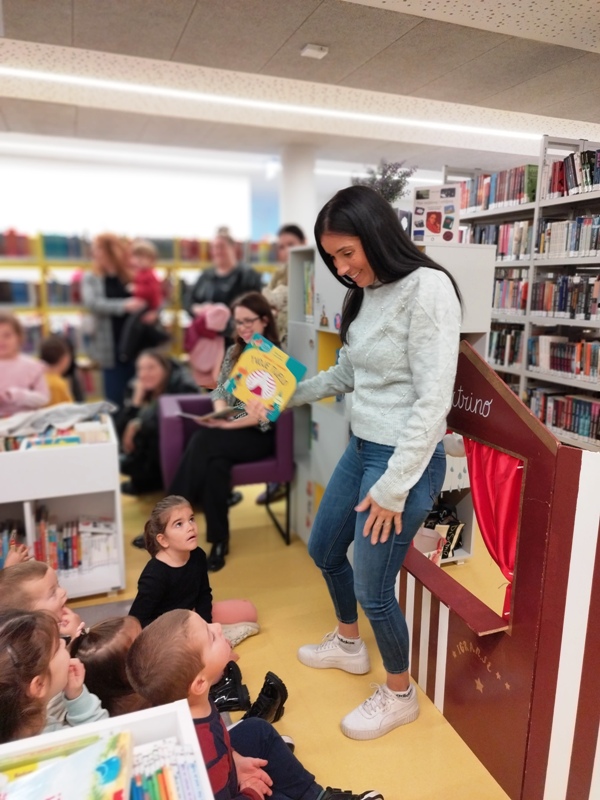 Prvi put u našoj knjižnici održan je TEATRINO te je dočekan s radošću mnoštva dječice u pratnji roditelja. Voditeljica im je priredila predstavu uz čitanje priče o Malom Vuku koji je pozvao svoju sestričnu Lunu na igru, ali kad treba posuditi igračke, Mali Vuk ne želi dijeliti.